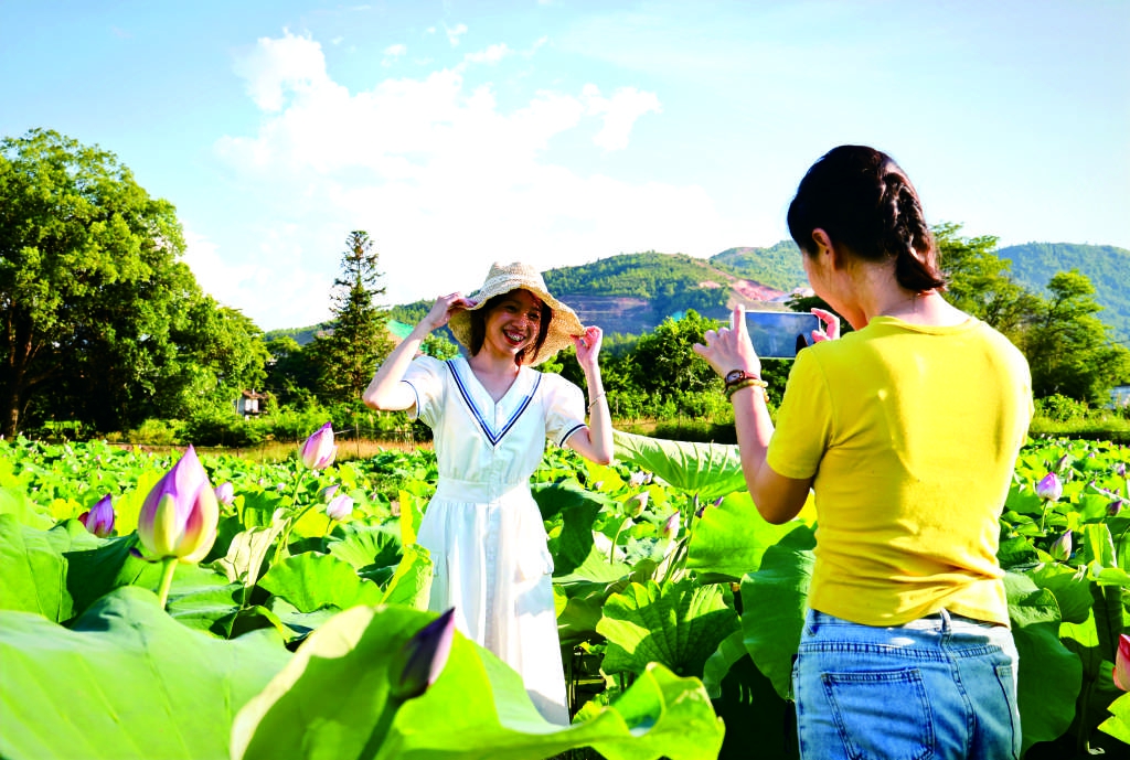 瑞金市融媒体中心讯(陈梅林 记者杨琦 邓诗怡)近日,在沙洲坝镇群峰村,空气中弥漫着淡淡的荷香,翠绿的荷叶层层叠叠,布满池面,景色诱人,吸引不少游客前往赏荷拍照。